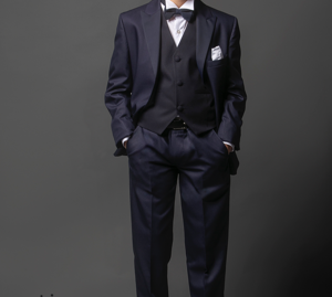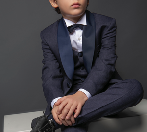 Seguendo l’ispirazione e le tendenze dell’abito da sposo, particolare attenzione va allo Smoking sia con Revers Lancia che Scialle, elemento caratterizzante della collezione, realizzato con tessuti micro-effetto ton sur ton nelle varie sfumature dei blu e nero e non solo. Spicca ancora una volta la tendenza del Country-Chic con Gilet e Bermuda rigorosamente nei colori della natura, oppure nei più audaci toni dei Blu.