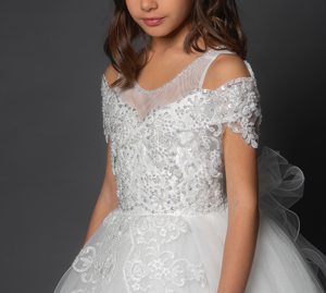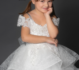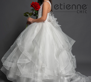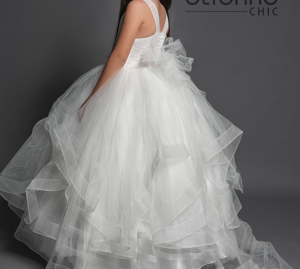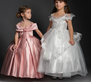 Le coroncine di brillanti e applicazioni floreali in 3D, che prendono spunto dal bouquet della sposa, rendono la damigella una vera principessa, ma a renderli ampi e unici è la crinolina nei sottogonna a 3 cerchi